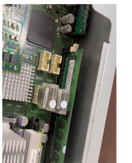2、撤下故障控制器,更换下图处的接口卡。检查缓存配置是否一致。