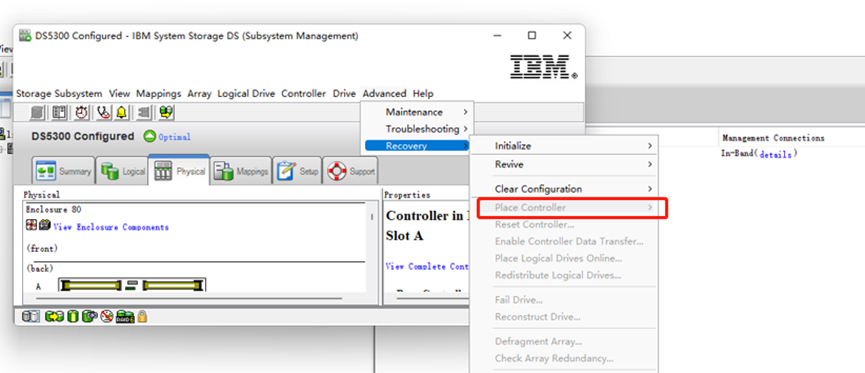 登录Ds manager软件中,选择故障控制器,然后菜单中选择advancerd---recover—place controller--online把控制器online