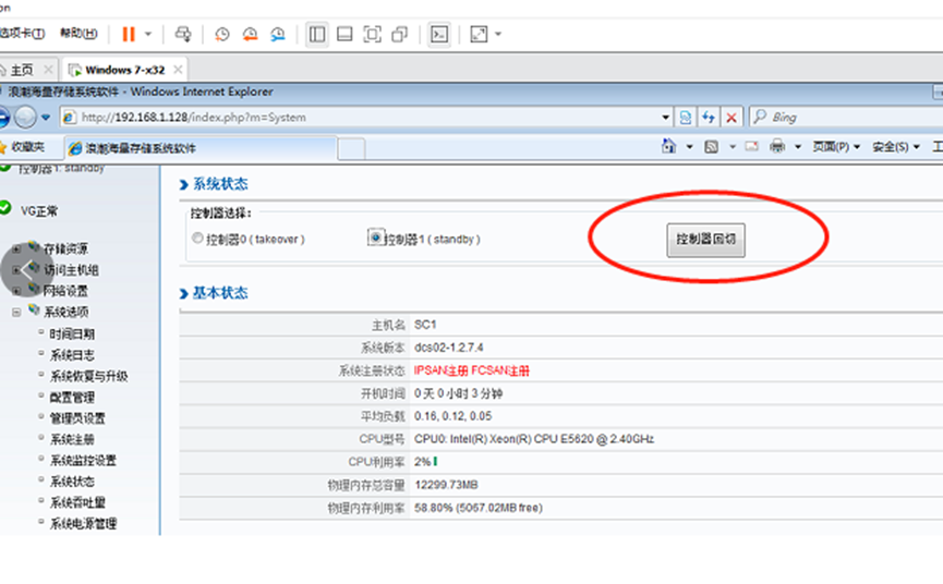 7、选择 STANBY 状态控制器,点击控制器回切,需要几分钟时间。
