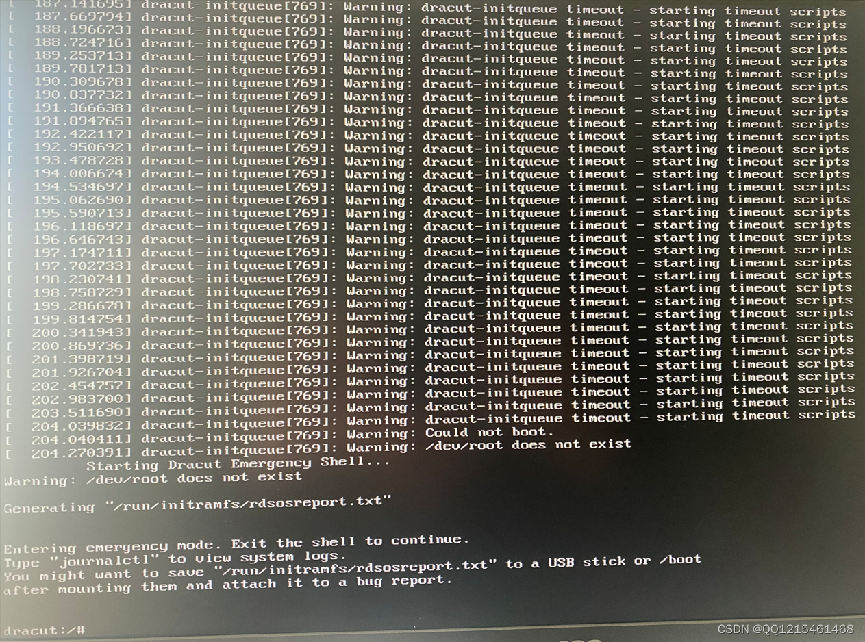 Warning:dracut-initqueue timeout - starting timeout scripts