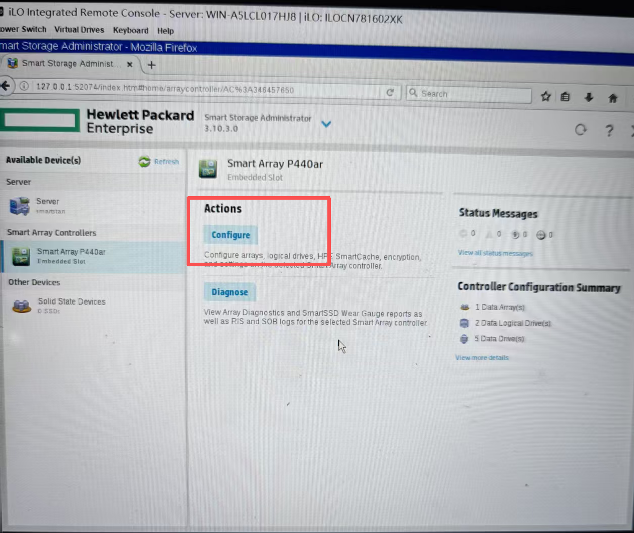 如下图可以看到阵列已经正常识别,但是依旧无法进入系统,点击configure