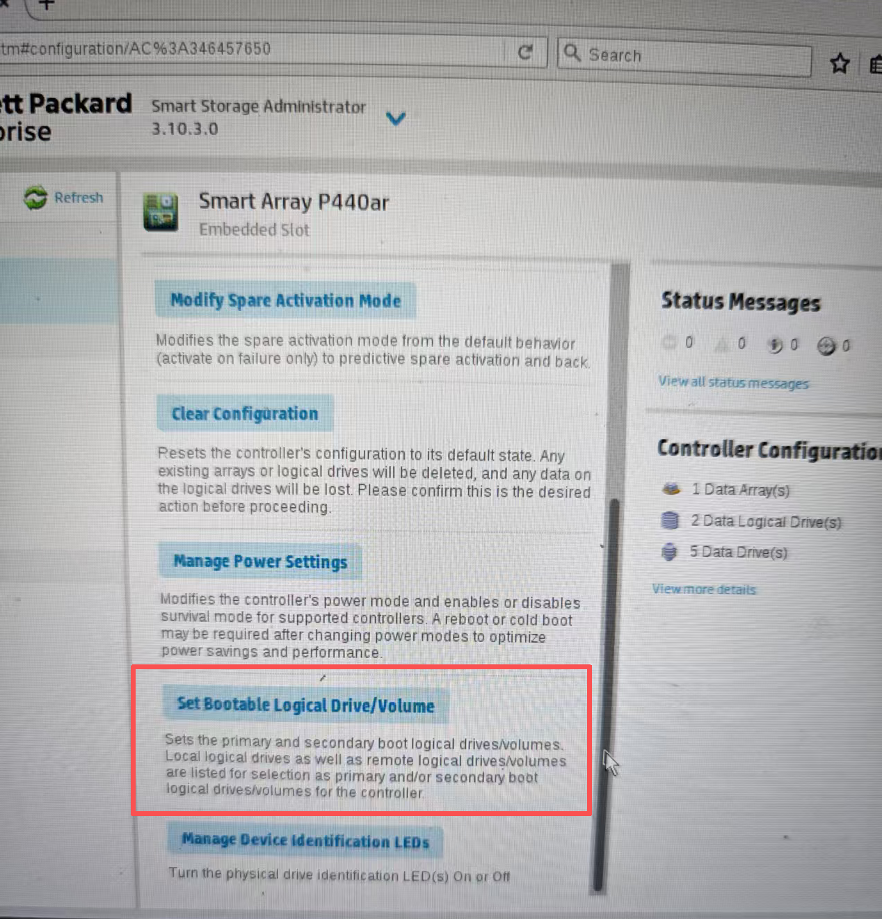 2、向下滑动,找到点击 Set Bootable Logical Drive/Volume